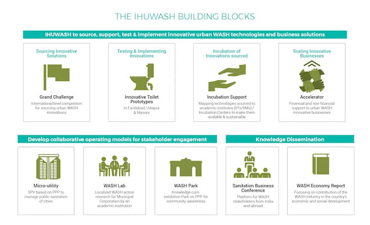 The USAID-supported Innovation Hub for Urban Water, Sanitation and Hygiene (IHUWASH) is such a platform. It attempts to foster cross-disciplinary partnerships with governments, research institutions, universities, industry bodies, private sector companies, sector experts and innovators to sustainably solve some of urban India’s most pressing WASH problems.