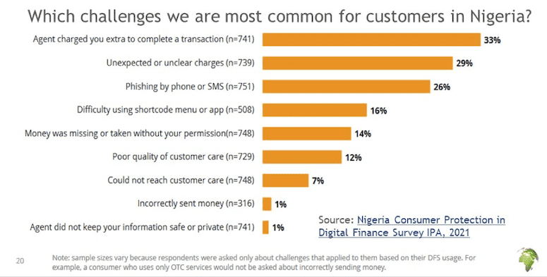 However, while agents offer many real advantages, they also raise several risks and consumer protection concerns that will require attention. For instance, the issues found in Nigeria by IPA in 2021 (see graph below) almost exactly reflect those found in Uganda by MSC and CGAP in 2015. These undermine trust and thus uptake and usage of digital financial services — with or without smartphones.