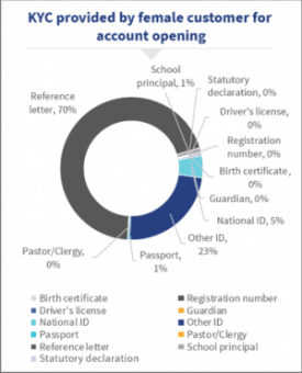 - The decision to use easily available KYC documents helped women more than men. MiBank made use of PNG’s strong wantok system and used referrals to ease the KYC requirement in the country. This step was in line with BPNG guidelines on KYC that allow banks to use reference letters for low-income groups.