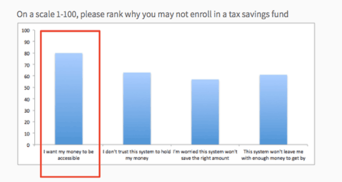 This contradiction presented a conundrum for our proposed solution. In our first study they said they wanted a system to help them easily save for taxes every paycheck, but in the second study they said they were worried about the accessibility of their money.