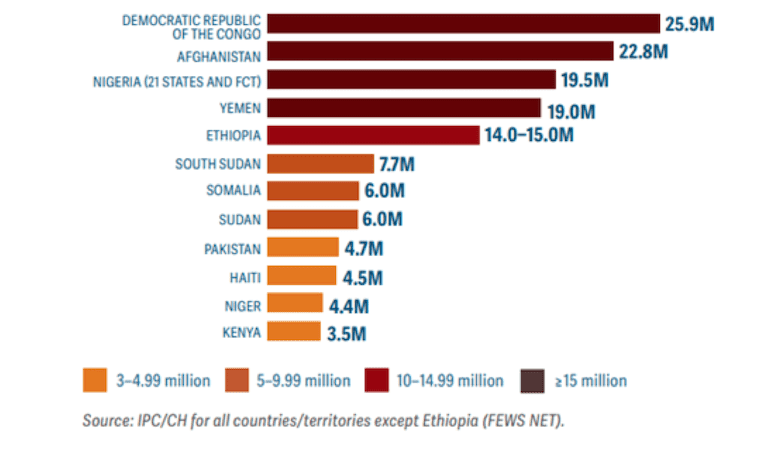 Countries with over 3 million people forecast to be in food crisis or worse in 2022