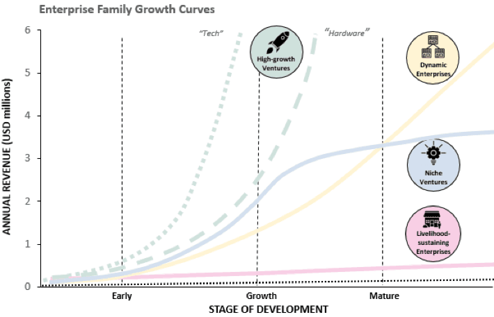 - Livelihood-Sustaining Enterprises are opportunity-driven small replicative business models that are just able to survive above local inflation and are found in great number across the globe. These businesses often start out as “mom and pop” shops at the microenterprise level, but subsequently grow to hire additional employees.