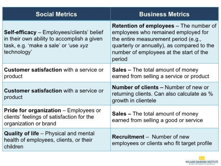 - Be Strategic – There is a reason why Child A doesn’t raise Child B. If you want business and social metrics that generate lessons and guide decision-making, you have to place parents – AKA: senior-level leadership – in the driver’s seat. The Boston Consulting Group’s article, Total Societal Impact: A New Lens for Strategy, offers an enlightening perspective on pursuing social impacts and business benefits simultaneously.