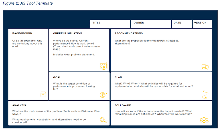 The value of the A3 tool lies not in the format, but in the process and thinking behind it. An A3 approach can help make the case for change or experimentation, while providing a way to create understanding to lead to action, and encouraging managers and leaders to observe operations and engage with employees. Thus, A3 thinking works both as a problem-solving tool and a structured process for developing proficient problem-solvers within an organization.