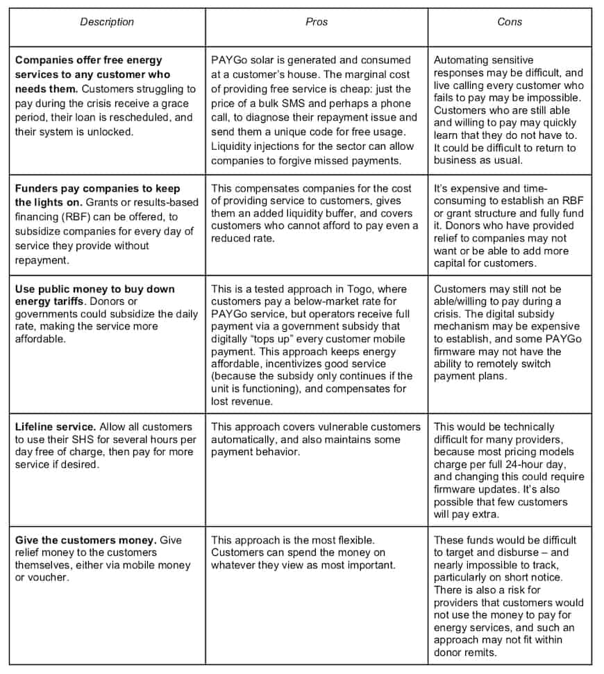 Despite the considerable financial pressure they are under, PAYGo operators have already taken steps to make this crisis easier for customers. These actions include: