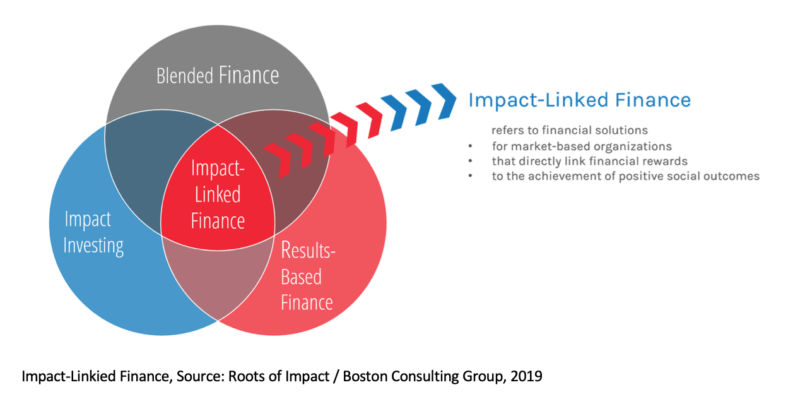 Impact-Linked Finance is an effective way of aligning positive impact with the economic viability of the investee enterprises, because the funding goes directly to them. The practice lies at the intersection between blended finance, impact investing and results-based finance. It bears many similarities to results-based finance, but differs in two key points: Firstly, it is used to catalyze private investment for businesses, as opposed to just providing payments for results. Secondly, it is rewarding the achievement of outcomes (e.g., decent jobs and increased income for target beneficiaries) as opposed to outputs (e.g., people trained). It thus represents financing for businesses that are willing and able to deliver positive impact beyond the usual scope.