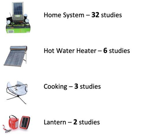 We conducted a systematic literature review to illustrate the enabling environment for off-grid solar uptake in low and middle-income countries. (Note: The link leads to a slightly older version of the review, shared in the public domain, which does not include more recent papers that are considered in this article.) After meticulously screening an initial 6,000 papers for relevance and quality, we were left with about 60 research papers from across the world, representing a diverse array of household solar technologies.