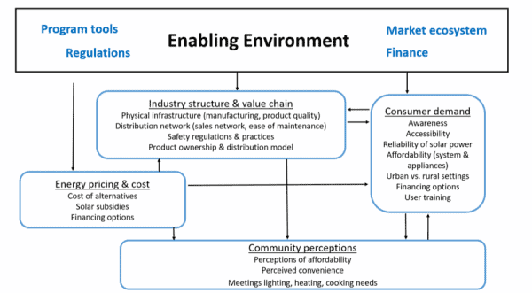 The burgeoning off-grid solar energy sector has become a $1.75 billion annual market, reaching 420 million users over the past decade. Despite this growth, over a third of the world’s population – roughly 2.8 billion people – have yet to gain access to clean cooking, and 789 million people still lack access to electricity. If business in the energy access sector continues as usual, we will fail to meet SDG7’s energy access targets by 2030. So what’s keeping us from powering households with off-grid solar at the required rate? Could there be a disconnect between what we “know” about how the enabling environment of regulations, finance, cultures and norms enables solar technology adoption, and what energy access businesses “do” to break down practical barriers between the products and end-users? In 2018, we sought to fill this “know-do” gap for the Sustainable Energy Transitions Initiative by identifying and analyzing the contextual factors that serve as enablers or barriers to the uptake of solar technologies.